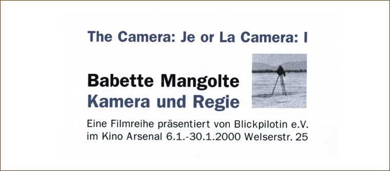 Kamera, Produktion: Babette Mangolte
